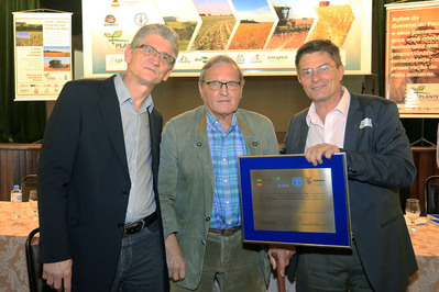 PLANTIO DIRETO – O Paraná foi pioneiro na implantação da técnica de plantio direto, que hoje está disseminada na agricultura nacional e consiste em utilizar as palhas e resto das colheitas passadas como cobertura para o solo, evitando a aragem que causa erosões. Os três agricultores responsáveis por trazer a técnica ao Estado nos anos 1980 – Franke Dijkstra, Hebert Bartz e Manoel (Nonô) Pereira (já falecido) – foram homenageados no seminário.