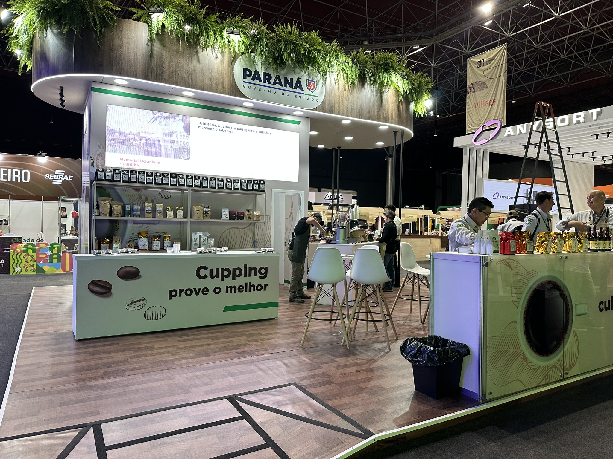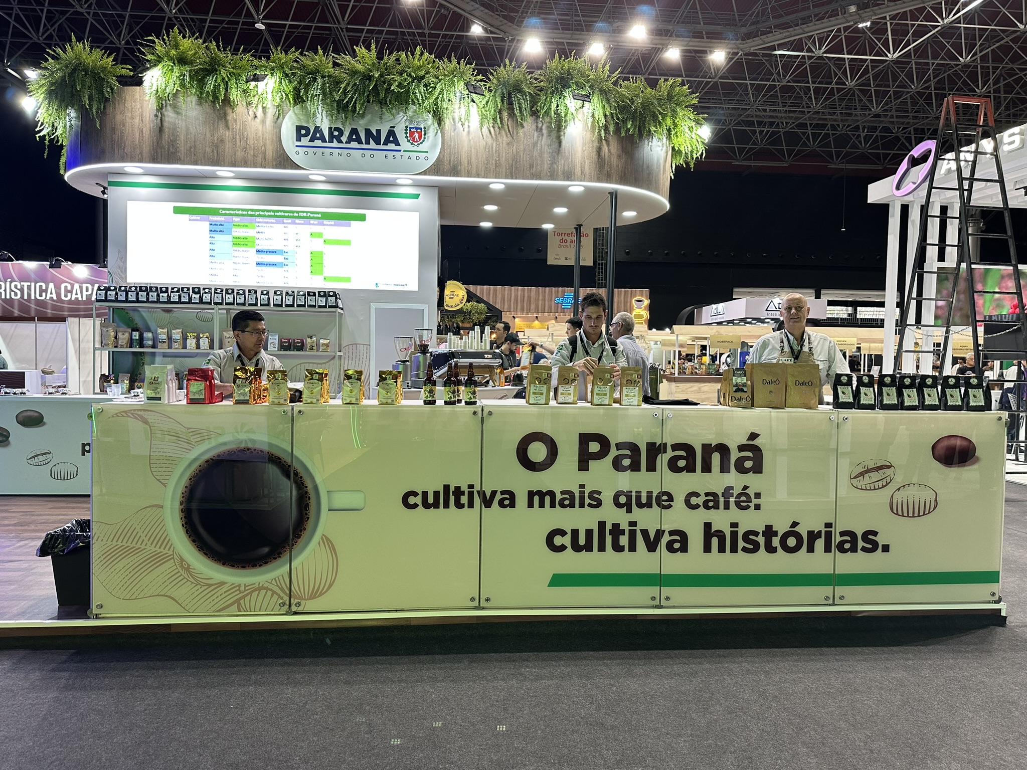 O estande foi estruturado com degustações para a avaliação profissional dos cafés paranaenses, destacando aroma, sabor e corpo da bebida. Para isso, um barista (profissional especializado em preparar e servir bebidas à base de café) vai torrar e preparar cafés especiais durante todo o evento.