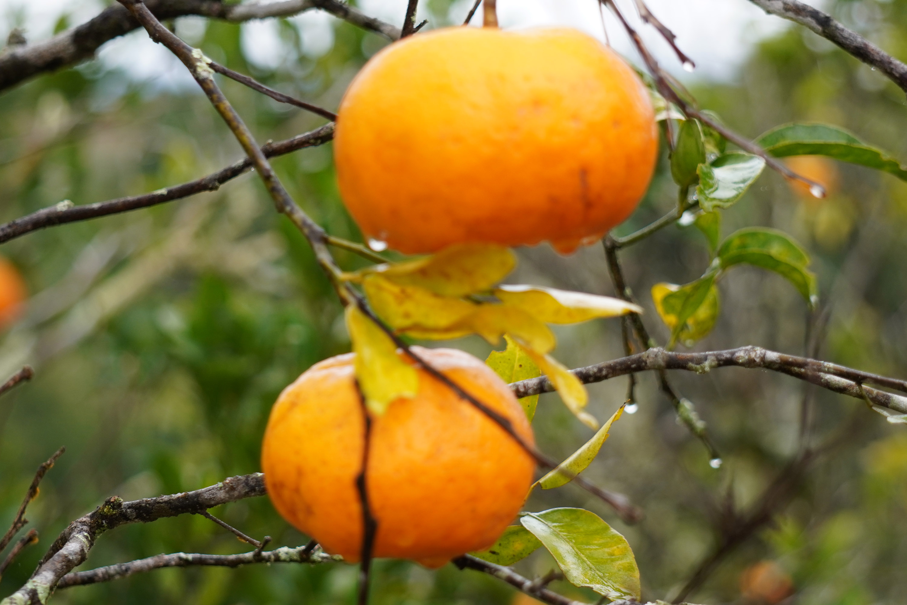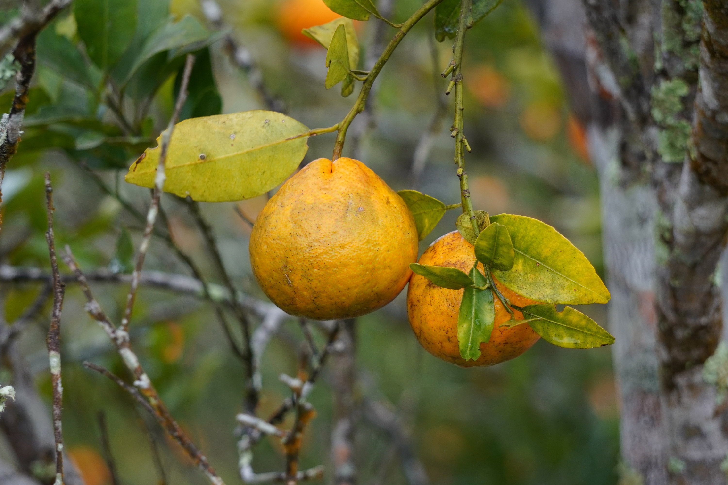 GREENING – O greening ou HLB (Huanglongbing) afeta seriamente as plantas cítricas, provocando queda prematura dos frutos e redução da produção, podendo levar à morte precoce das plantas. Os frutos afetados geralmente ficam menores, deformados, apresentando formato semelhante ao de pera, com sementes abortadas, menor teor de açúcares e acidez elevada, o que compromete o sabor e reduz o valor comercial, tanto para o consumo in natura quanto para o processamento industrial.