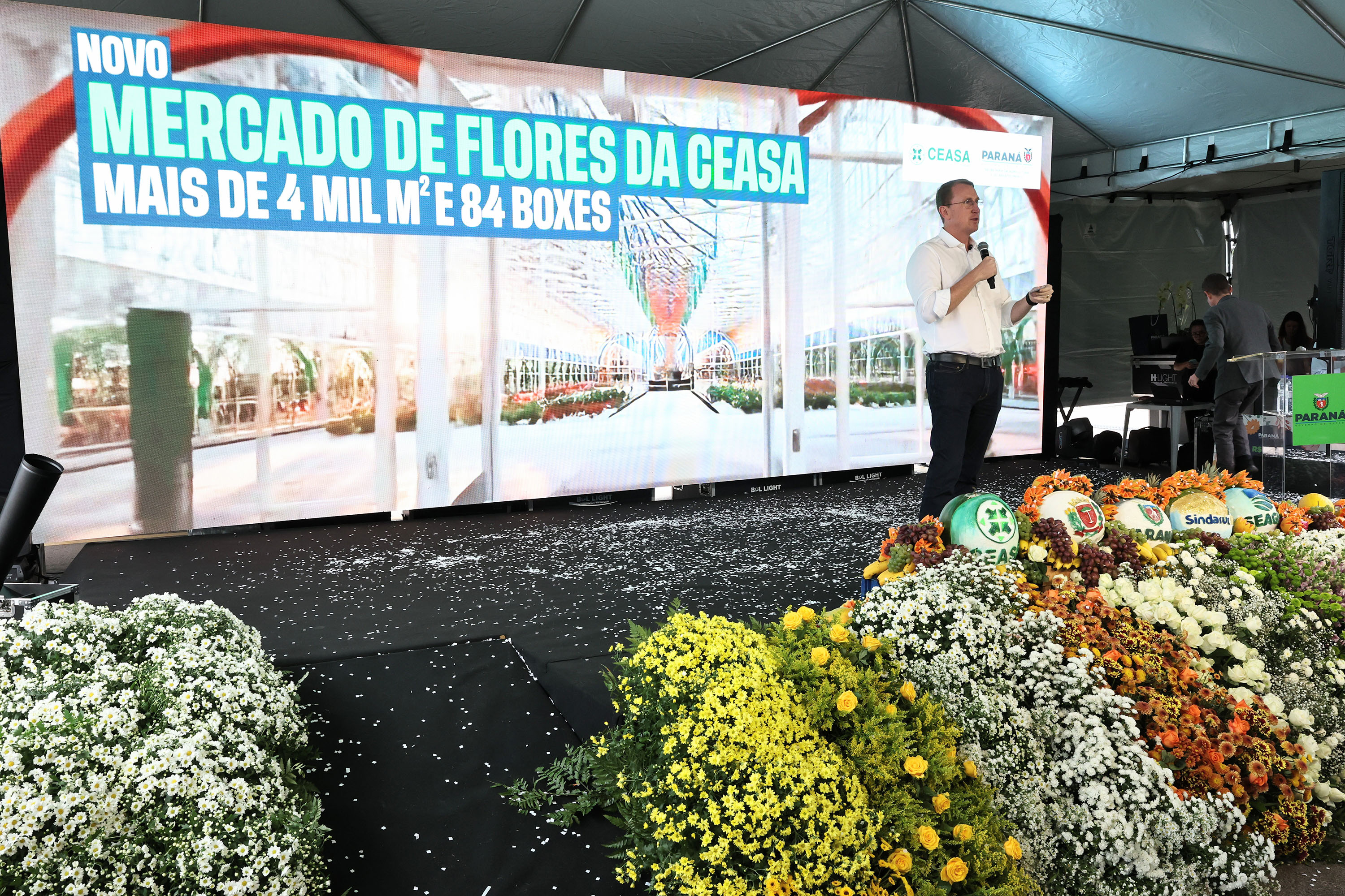 É o maior investimento recente em infraestrutura da Ceasa de Curitiba. O novo mercado de flores contará com 4,8 mil metros quadrados (m²) de área construída, quase três vezes maior que os atuais 1,7 mil m². Essa ampliação possibilitará que o número de boxes passe de 42 para 84 unidades, dobrando a capacidade de comercialização e, dessa forma, fortalecendo a floricultura e os produtores no Estado.