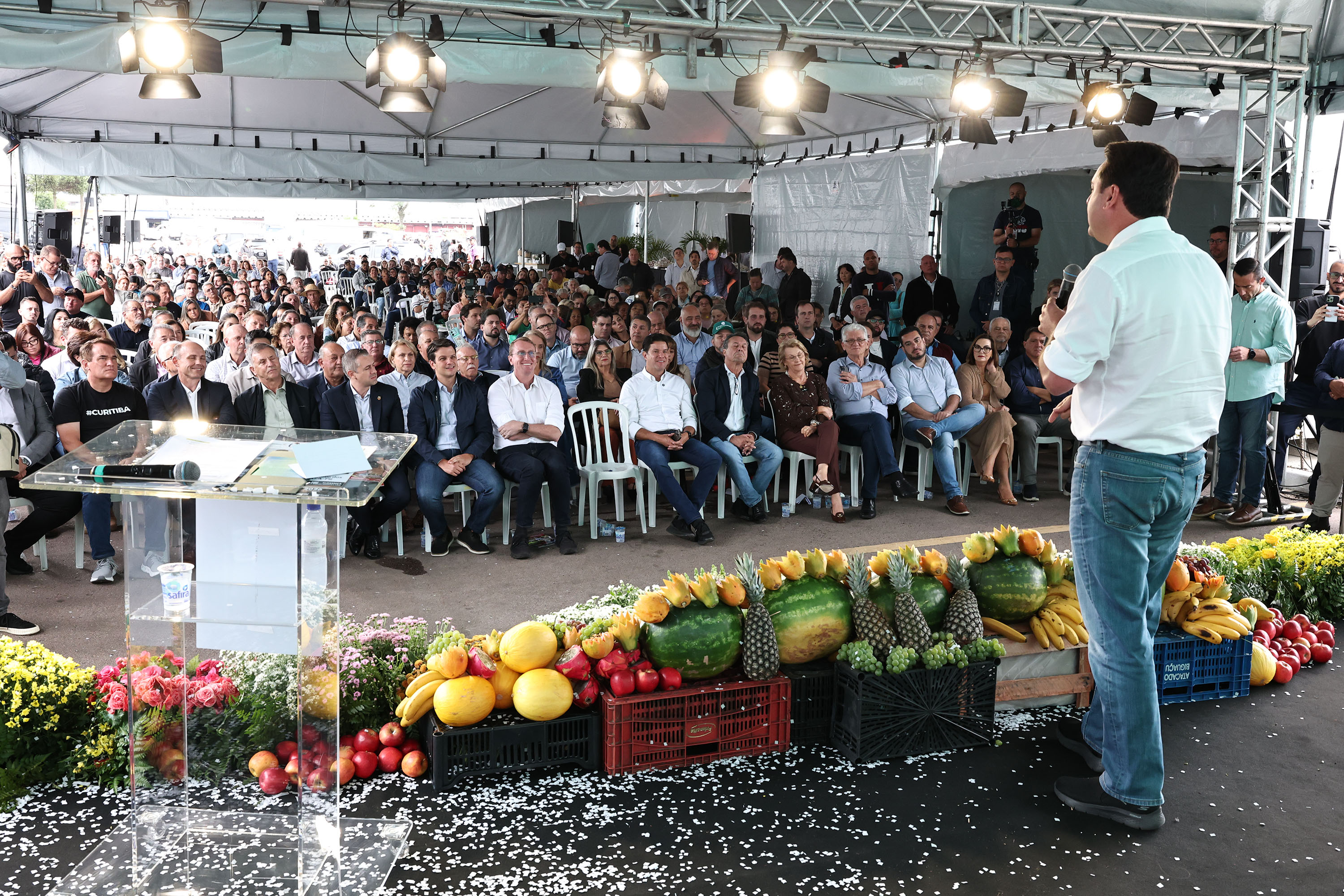 PRESENÇAS – Participaram do evento os secretários estaduais Cleber Mata (Comunicação), Luizão Goulart (Administração e Previdência) e Norberto Ortigara (Fazenda); o chefe da Casa Militar, coronel Marcos Tordoro; o subchefe da Casa Civil, Lúcio Tasso; os diretores-presidentes do IDR-Paraná, Natalino Avance de Souza, e da Adapar, Otamir César Martins; a deputada estadual Secretária Márcia; o vice-prefeito de Curitiba, Paulo Martins; o prefeito de Holambra (SP), Fernando Henrique Capato; prefeitos e demais autoridades.